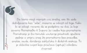 Unutarnja podjela Sam cilj bilo koje duhovne discipline je promjena. Promjena stanja, emocije, koncepta koji o sebi imamo, promjena načina doživljaja svijeta, promjena izražavanja, itd. Svi težimo