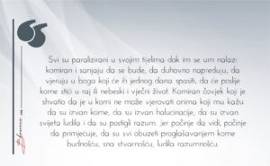 Jednog dana, nakon tko zna koliko godina, shvatimo da je sve ono što je rečeno za čovjeka, mašinu ili nesvjesnog čovjeka, u stvari istina. To
