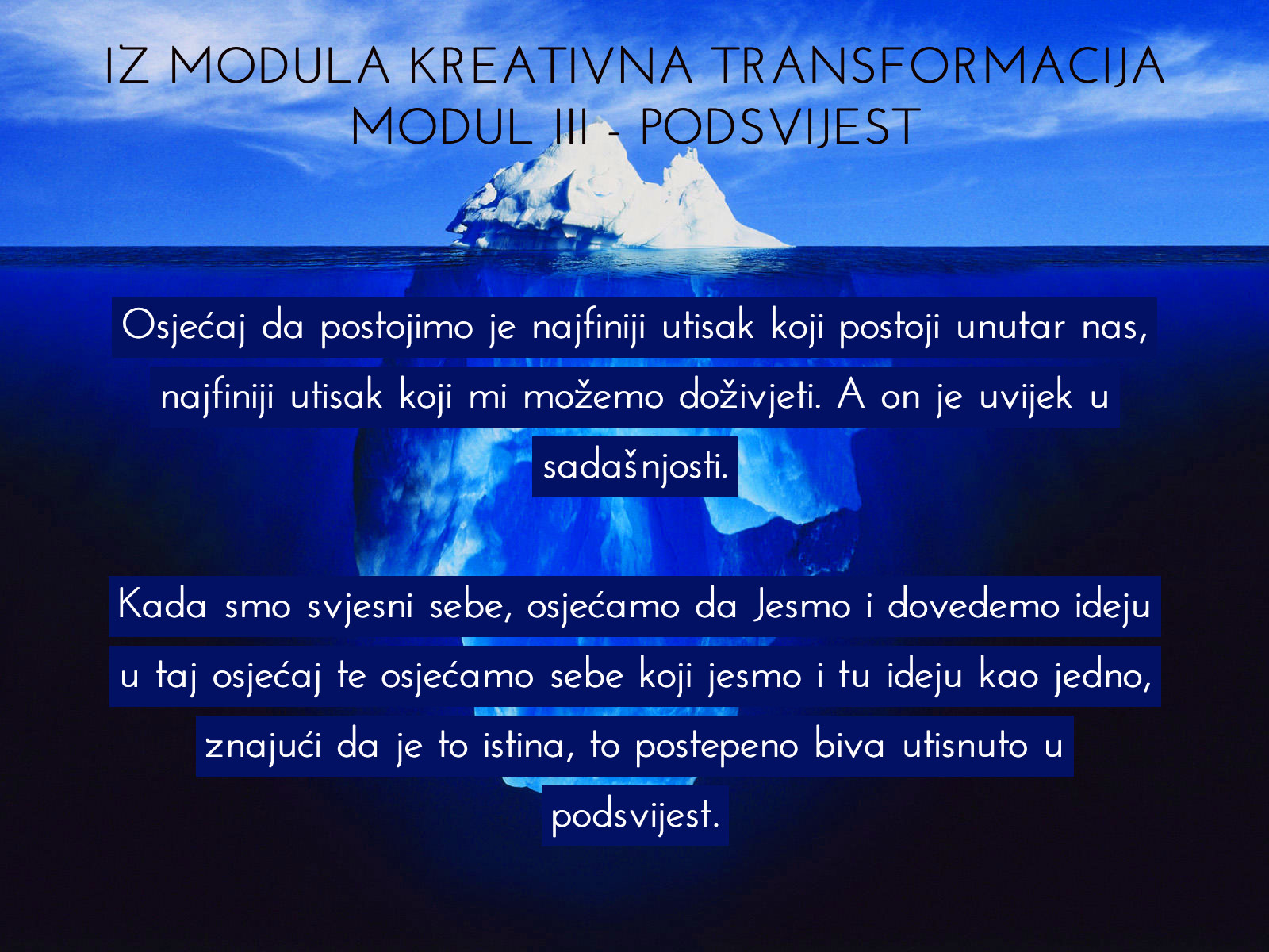 Postoji način na koji svakodnevan čovjek koji teži poboljšanju, učenju, mijenjanju sebe može indirektno djelovati na podsvijest. I to sam dao u Modulima. Malo više o “Podsvijesti” pročitajte u Modulu III.